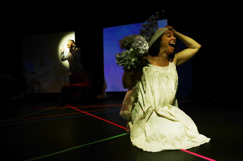 The specter of Brazilian author Clarice Lispector pervades the stage at Immense Joy, a new production devised and directed by Anna Kohler, and presented by The Tank NYC. At the height of her fame, Lispector’s name (originally Chaya Pinkhasivna Lispector at birth) almost always conjured an air of mystery―not just because of her curious Ukrainian origins, but also because of the abstract way she wrote. And it is abstraction that finds its way into Kohler’s production through a series of vignettes, narrated through the use of innovative multimedia projections by Massimilliano DiMartino. The result is one of, well… immense joy itself.